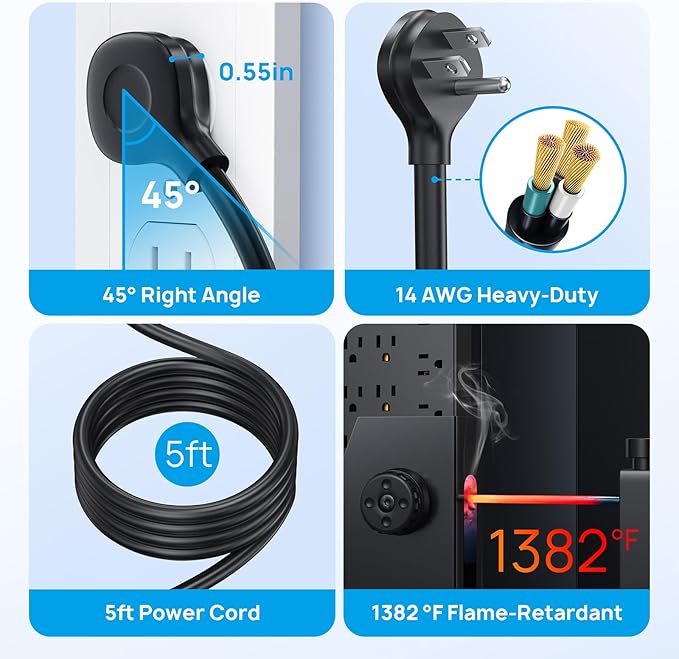 - 【8-Point Safety System】ETL certified and combined with 4000 Joules surge protection, short circuit protection, overload protection, fire resistance shell, and more to defend your computer, TV, phones, and other household office electronics against dangerous surges, spikes & lightning