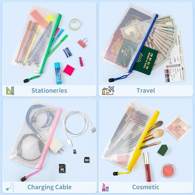 - 【Versatile Zipper Bags】 - For travelers, you can use it to store passports, charging cords, toiletries. For office workers, it can help you organize and store documents, receipts. For family storage, you can organize pencils, pens, markers, etc