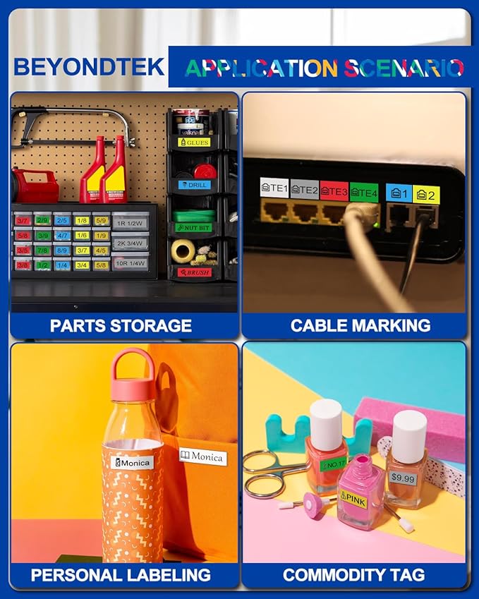- 【M Tape Wide Applications】-Use ▶ Item Differentiation, Date Labeling, Operation Tips, Price Labeling, Personal Items Labeling, DIY Blessing Language and more.-Scene ▶ Home, Office, School, Hospital, Government, Hotel, Restaurant, Factory, Bank, Laboratory, Warehouse, Farm, Repair Shop,Stores, Supermarkets and more.