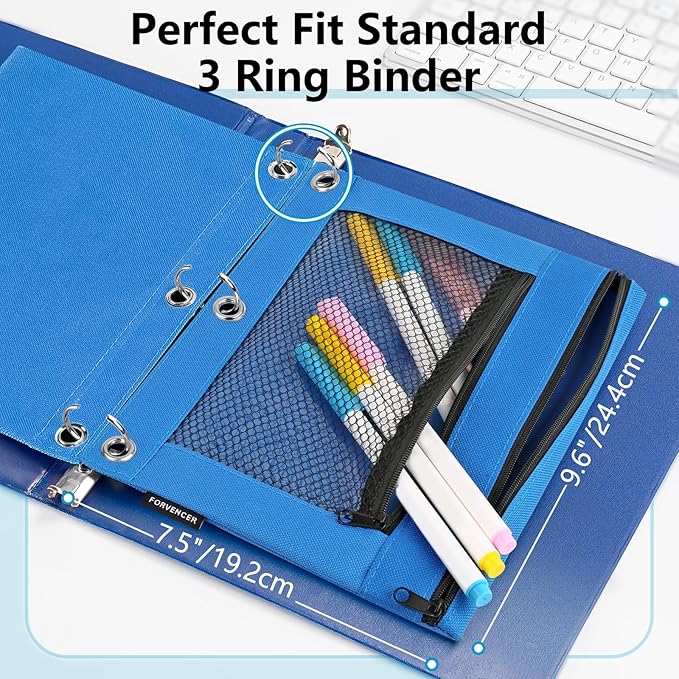 - Spacious and Portable: Measuring 9.6"L x 7.6"W, this pencil case pouch offers ample storage for up to 50 pens, 70 pencils, or an A5 notebook. Designed to fit easily into a standard 3-ring binder, it’s both practical and portable.
