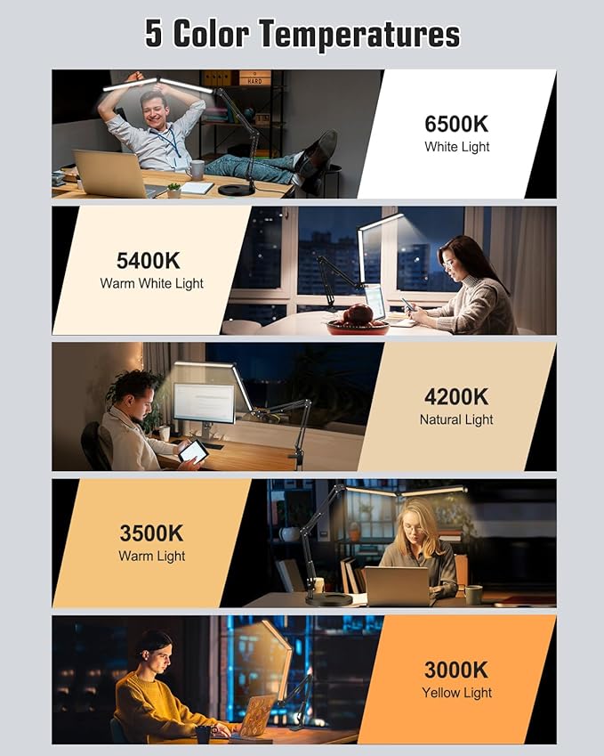 - 【Ultra Long Lamp Head - Wide Light Range】With 27in ultra-long double head, our desk lamp for home office casts a broad and even light across large work areas, eliminating shadows and ensuring your entire desk is brightly illuminated. This led desk light is ideal for expansive workbench or multi computer monitor