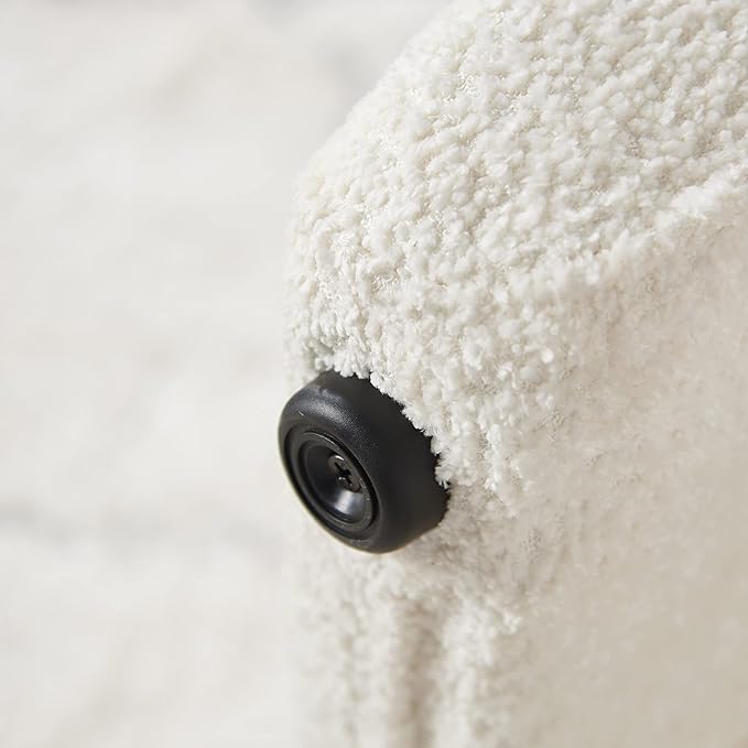 Modern Boucle Ottoman, Vanity Stool Chair, Foot Stool with Wooden Legs Sofa Bench Footstool Extra Seat for Vanity, Makeup Room, Living Room, Entryway, Set 2, White