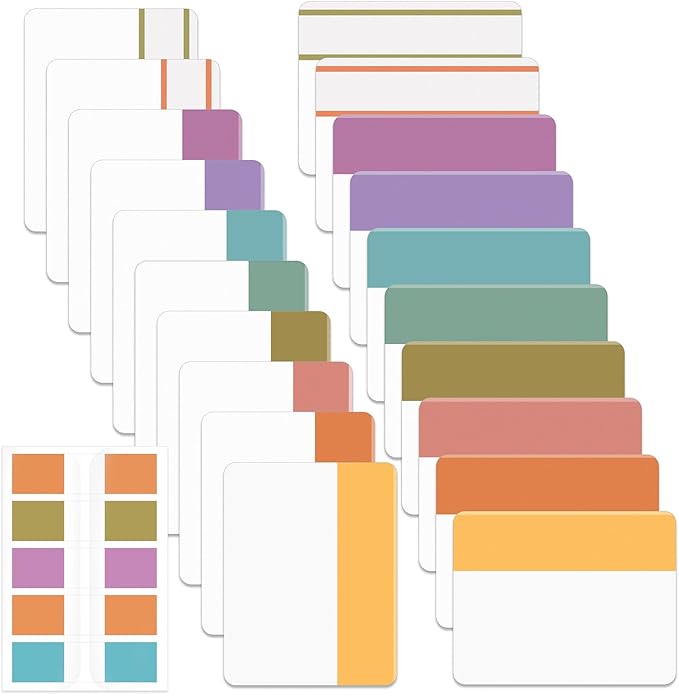 - Half of the file tabs have self-adhesive backing while the other half can be written on, making them repositionable and convenient for sticking and marking as well as removal without residue.
