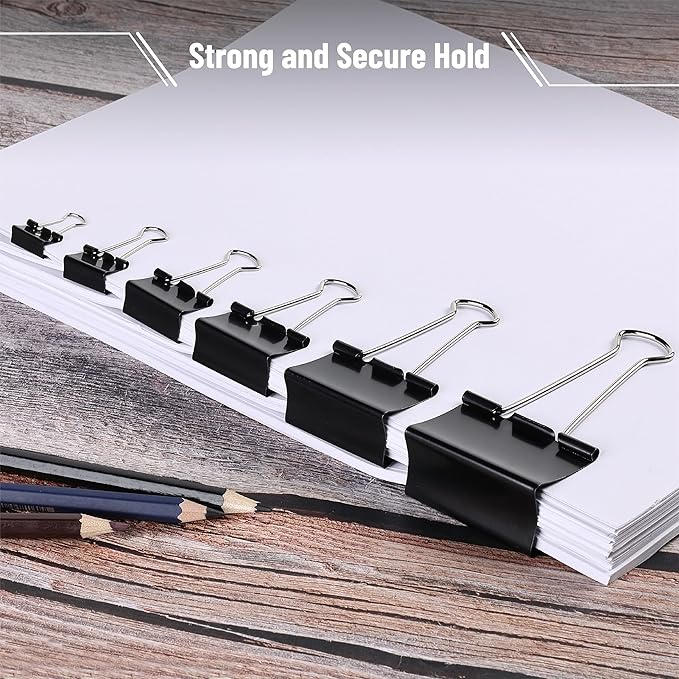 - Each binder clip is constructed with a durable black metal that offers a strong clasp for holding papers tightly, preventing slips or losses.