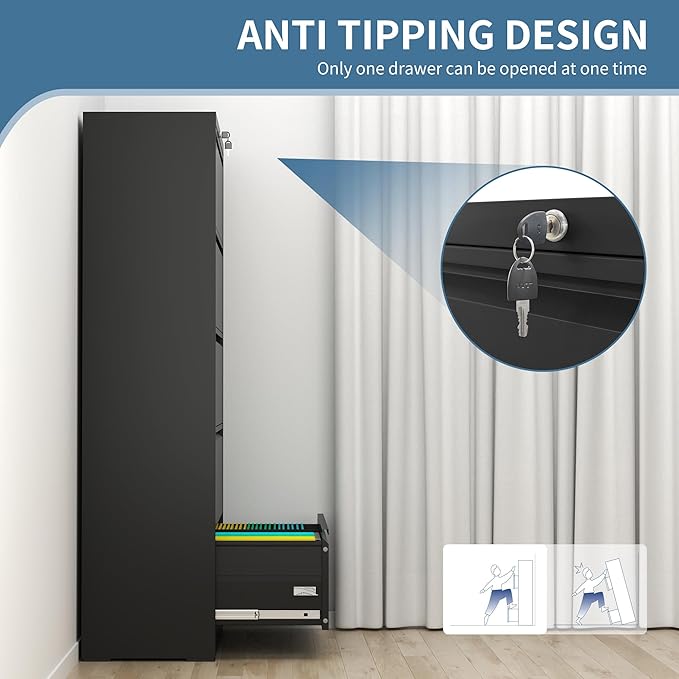 AQY 5 Drawer File Cabinet with Lock,Metal Lateral File Cabinets for Home Office,Steel Wide Filing Organization Storage Cabinets for Hanging Files Letter/Legal/F4/A4 Size,Assembly Required(Black)
