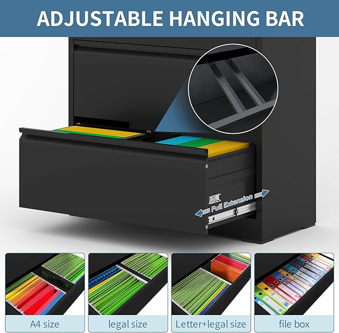 - 【High Quality】: Lateral file cabinet with lock is made of thick high-strength cold-rolled solid all-steel material.Powder-coated construction making the heavy duty file cabinet immune to corrosion and rust which is very durable and stable for your daily use at home and office.Due to the metal surface, metal storage cabinets are easy to clean and maintain. The filing cabinet only require a damp cloth or cleaning agent to wipe them down.