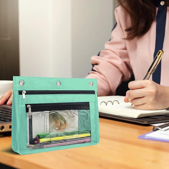 - [3-Ring Pencil Pouch]: The zippered pouch with rivet holes is perfectly compatible with all standard 3-ring binders and is widely used in universities, schools, offices and homes.