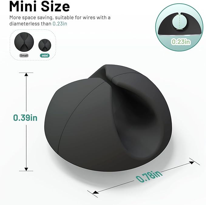 - Mini Size:The smaller one saves more space. Organizes the wires and cable on the desk, keeping the desk neat. Perfect charging cable holder. Dirt-resistant cable management clips