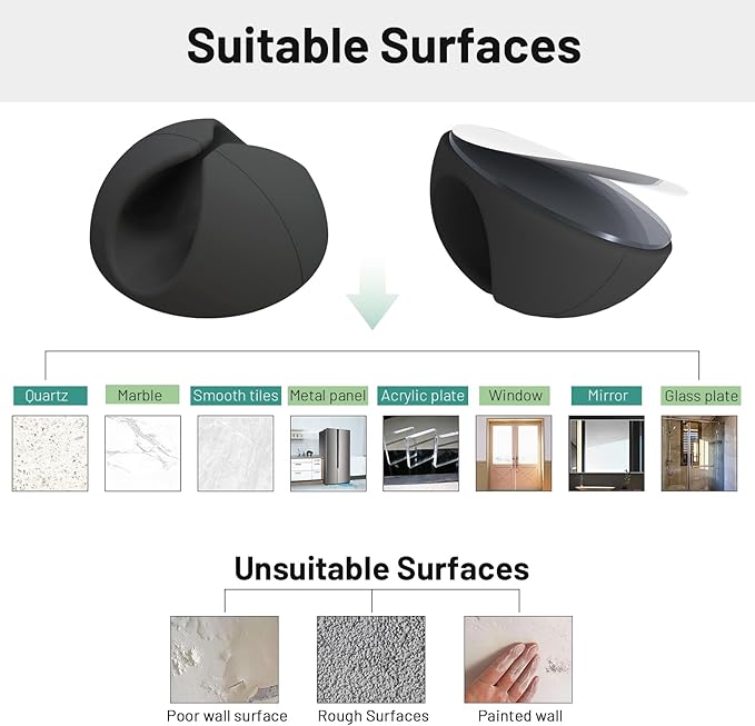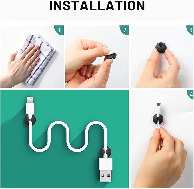 - Easy to install: Remove the protective film, stick the cord organizer, and drain the air from the contact surface. Suitable for a variety of smooth surfaces, like tiles, steel, glass, mirrors, painted wood