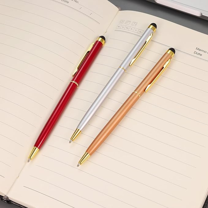 - Muti-use and Convenient: 2 in 1 Design Stylus Pens, Slim and Lightweight,One side contains sensitive stylus for touch screens,One side the black ink ballpoint pen on the other side for convenient writing,Smooth and long lasting ink flow