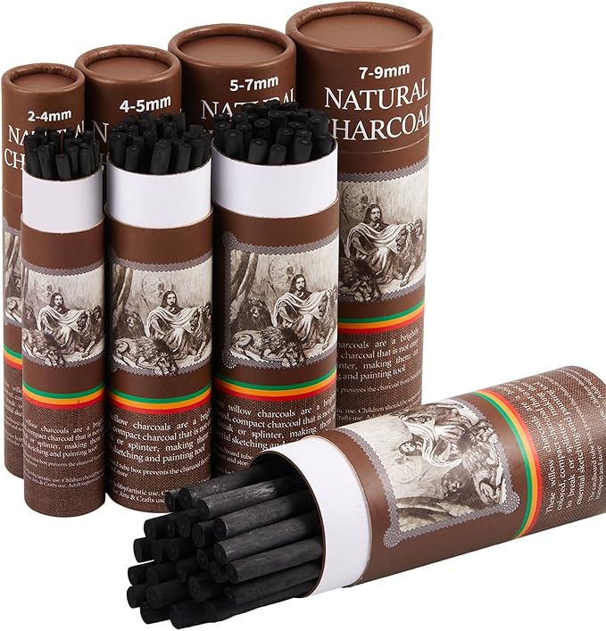 - Sturdy and Reliable Willow Charcoal: we have improved the box and still provide the smooth and quality willow charcoal sticks; The sketch tools are made of willow charcoal, you can experience the blend of endurance and convenience, ensuring lasting usage, it slides smoothly and has smooth lines when applied; Willow is darker and more forgiving than vine, which can produce a range of tones, and willow breaks less than vine charcoal