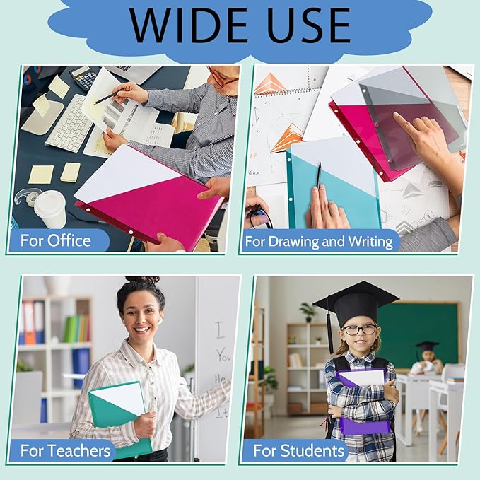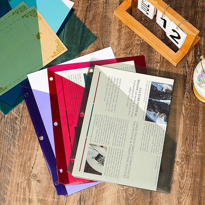 - Practical and Useful: our clear plastic document folders are designed in 3 hole punch, so that paper can be easily added to the binder; Designed with slash on the side to keep documents secure