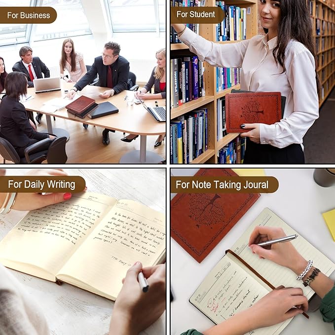 - 【Premium Craftsmanship】Designed with a medium-sized 5.7 x 8.3-inch A5 format, this journal features a luxurious waterproof faux leather cover that exudes sophistication and durability. The soft and comfortable leather texture enhances your writing experience, whether you're sketching, note-taking, or journaling.