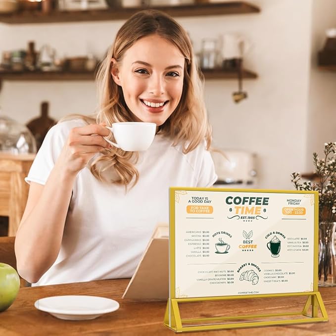 - 【Double Sided Display】This 7X 5 gold sign holder is designed with a vertical double sided stand that clearly and efficiently displays pictures and posters