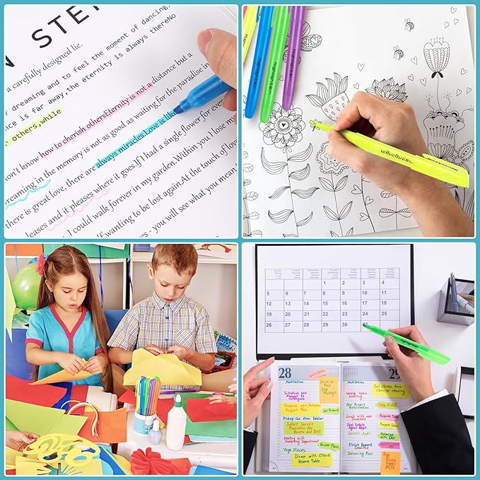 - Chisel Tip Design:This assorted colors highlighter can be used for drawing or marking important knowledge points. It can switch between thick and thin lines according to your needs, the ink will not smudge and can be used for a long time.