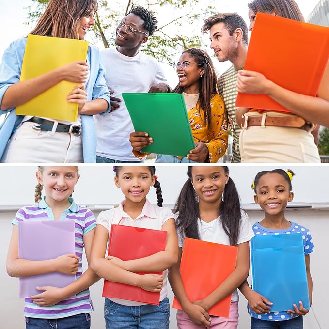 - Vibrant Colors: the plastic 2 pocket school folders have 12 colors, including purple, blue, light blue, navy blue, sky blue, green, light green, yellow, light purple, pink, red, orange; The colors are advanced and beautiful; You can classify and manage your files through different colors
