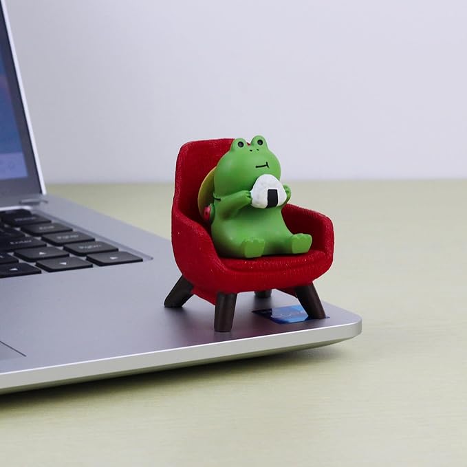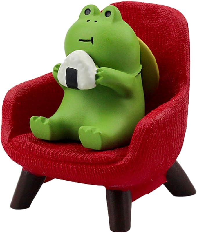 - Cute Desk Accessories: This cute set includes a miniature frog figurine enjoying a tasty rice ball while sitting on a charming mini sofa