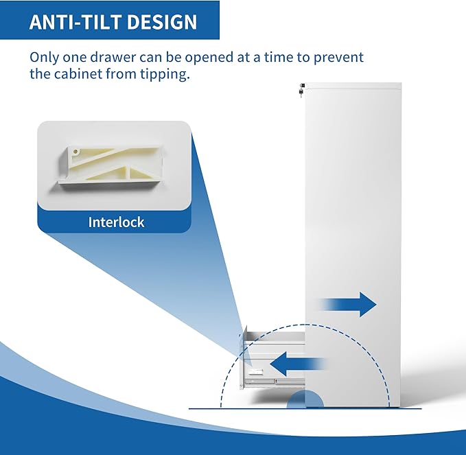 - 【Multiple Storage Types】This 5 drawer vertical file cabinet with lock is larger and deeper than similar cabinets in the market. Making it the perfect solution for all your storage needs. The drawers of the locking file cabinet are also equipped with one adjustable hanging rail, allowing you to perfectly store letters, legal, A4 size folders and file box to meet your different needs.