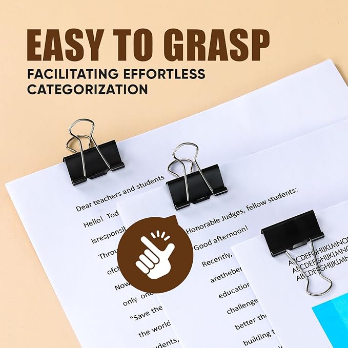 - SECURELY BUNDLE YOUR PAPERS - With an impressive gripping force, Kalerr Binder Clips effortlessly secure up to 80 sheets of paper, preventing accidental spills and maintaining document integrity. These clips are designed to hold firmly, providing a reliable solution for your paper-fastening needs.