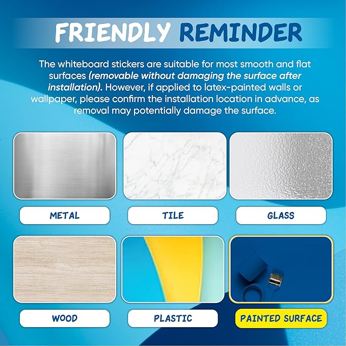 - Easy Installation: Our magnetic board for wall comes with a strong self-adhesive backing, eliminating the need for drilling or tools. Simply peel off the backing paper and apply it to a smooth and dry surface. The gridline design on the backing paper helps you accurately cut it to the desired size. The installation process is simple and quick, and the product comes with an installation manual, allowing you to quickly have a convenient magnetic wallpaper