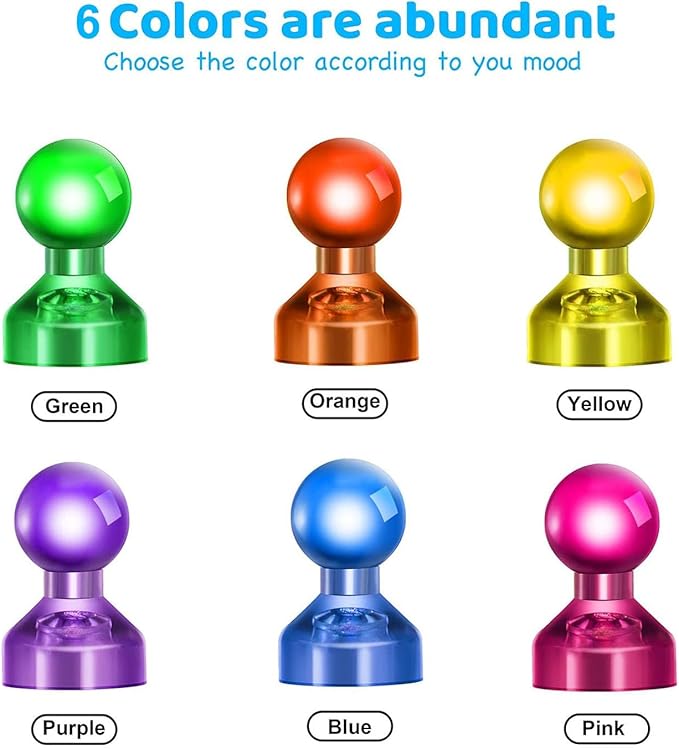 - SMALL STRONG MAGNETS: Each powerful magnet holds up to 11 sheets of paper on any metallic surface. No more sliding papers with cheap magnets. These push pin magnets are tiny too so they won't cover up exact things you want to display.