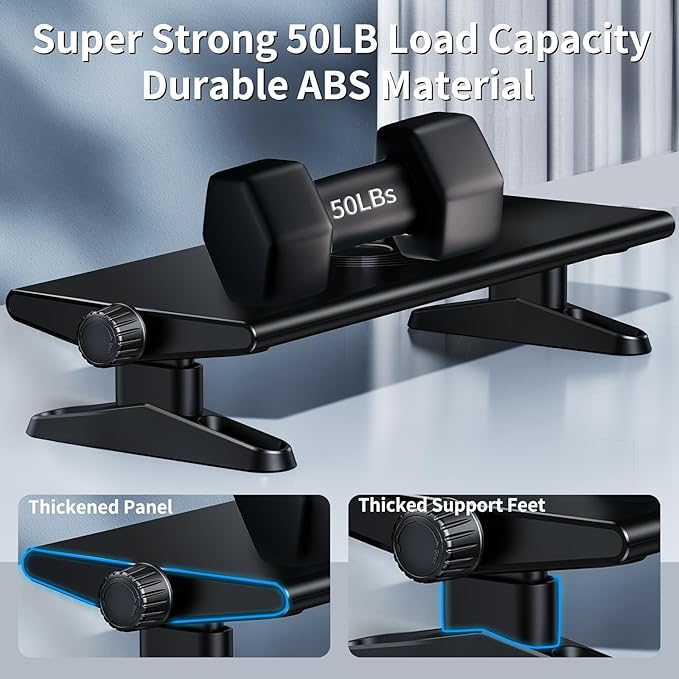 - 【Strong Bearing Capacity & Widely Applicable】 Our desktop riser adopts upgraded materials and designs. The thick ABS hard plastic material allows the gaming monitor stand to bear 50 pounds easily. The compact and solid design and production make it very stable and does not shake at all. Not only suitable for monitors and laptops but also for speakers, printers, coffee machines, TV, etc...