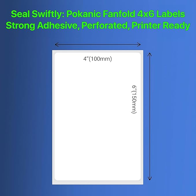 Fanfold 4 x 6 inch Thermal Labels Stack Direct White Strong Adhesive Perforated Postage Shipping Printer Compatible with Zebra SNBC Epson Rollo (3000, Fanfold)