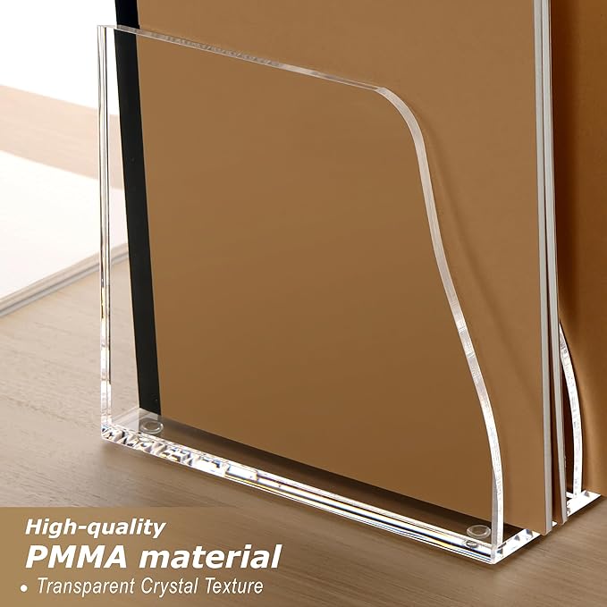 - Sturdy and Durable File Organising Shelf: Made of high quality 5mm thickness acrylic material, hand polished and sanded with smooth edges and rubber anti-slip pads on the bottom to make it more stable on the desktop and not easy to fall off!