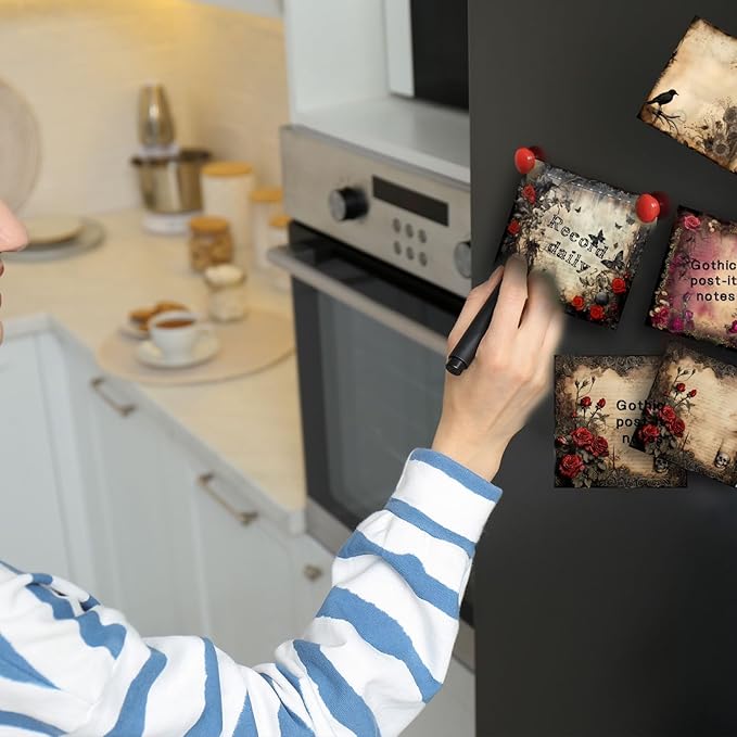 - Easy to Use: These self-adhesive gothic style sticky note pads can be easily pasted on the surface of most items, such as walls, doors, windows, books, whiteboards, desks, computers, refrigerators, and other flat surfaces, and they are easy to tear off and will not leave traces of adhesion on the surface of the items.