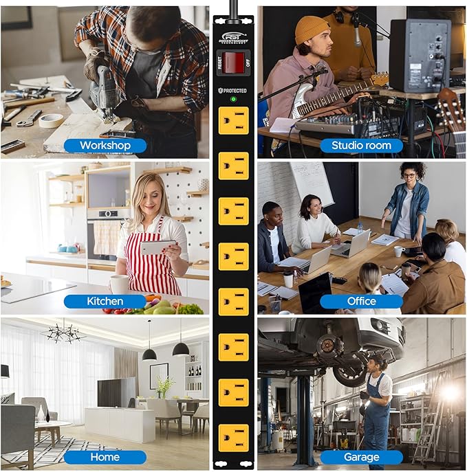 - [Versatility] - Makes it an ideal choice for a wide range of settings, including homes, garages, and workshops. Whether you're working on a DIY project in your garage, or running power tools and machinery in your workshop, this metal power strip can handle it all.
