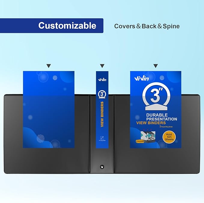 - Various Capacity: ViVin 3 ring binders are available in various sizes, accommodating different paper capacities, making them versatile and suitable for different storage needs. Fit letter size documents or 3-hole folders.