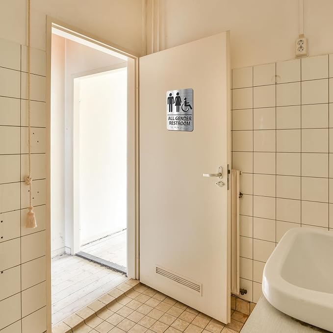 - 【ADA Compliant & Braille】: Ensure inclusivity and accessibility with our ADA-compliant braille restroom sign. Install it adjacent to the door handle, positioned 48-60 inches from the floor.