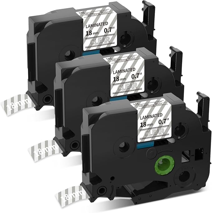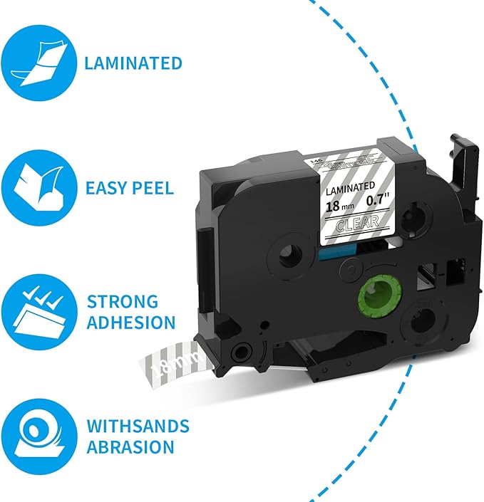 - Width: 3/4 inch (18mm 0.7 inch), Length: 26.2 feet (8 meter) each, White on Clear Label Tape Features: withstand Water, withstand Grease, withstand Abrasion, Corrosion-Proof, Higher or Lower withstand Temperature as well as withstand Fade, Replacement for Brother label maker tape 18mm 0.7 white