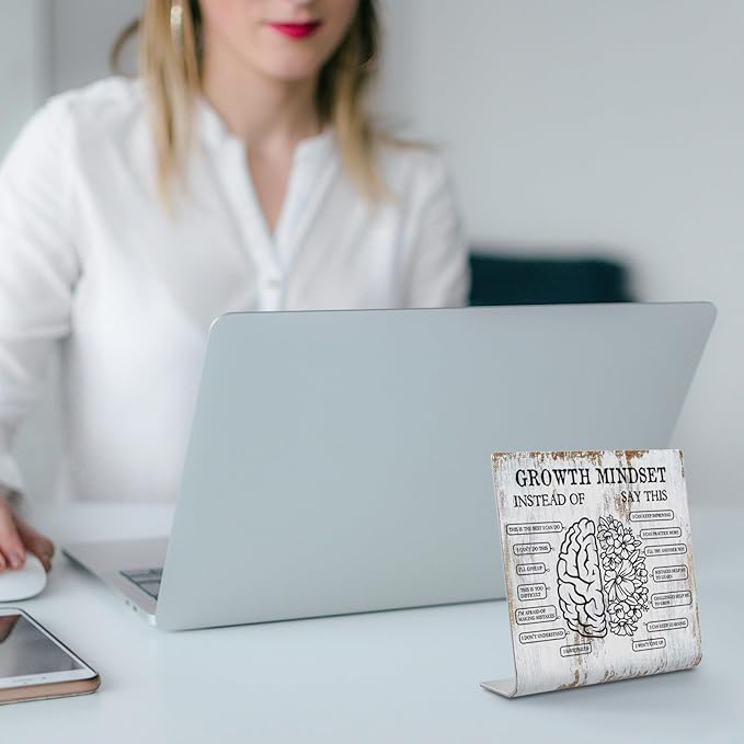 TRCENDE Growth Mindset Definition Plaque Desk Decor Office Shelf, Funny Work Colleague Gifts for Men Women, Mental Health Therapy Office Motivational Decor XUV112