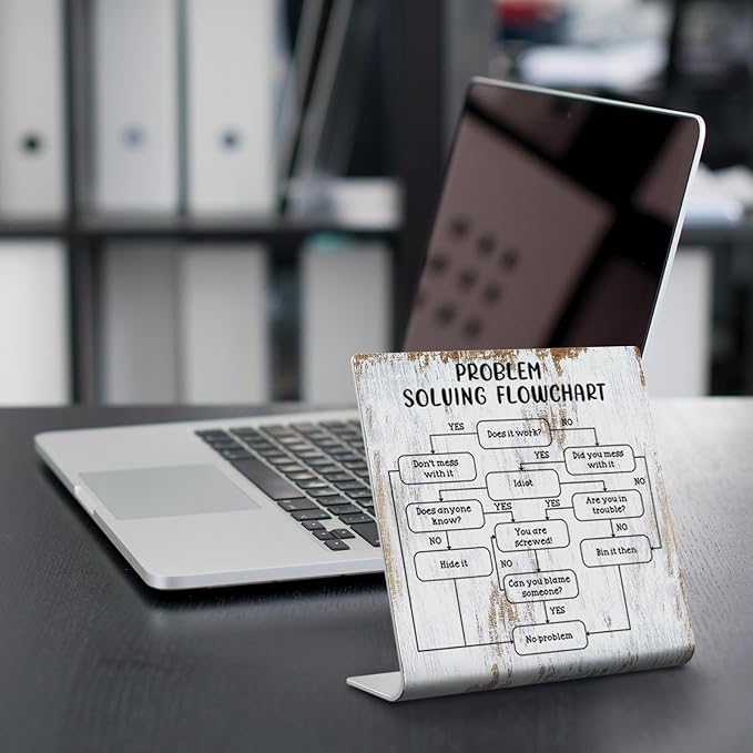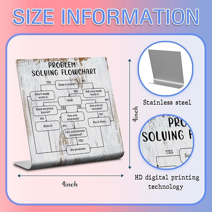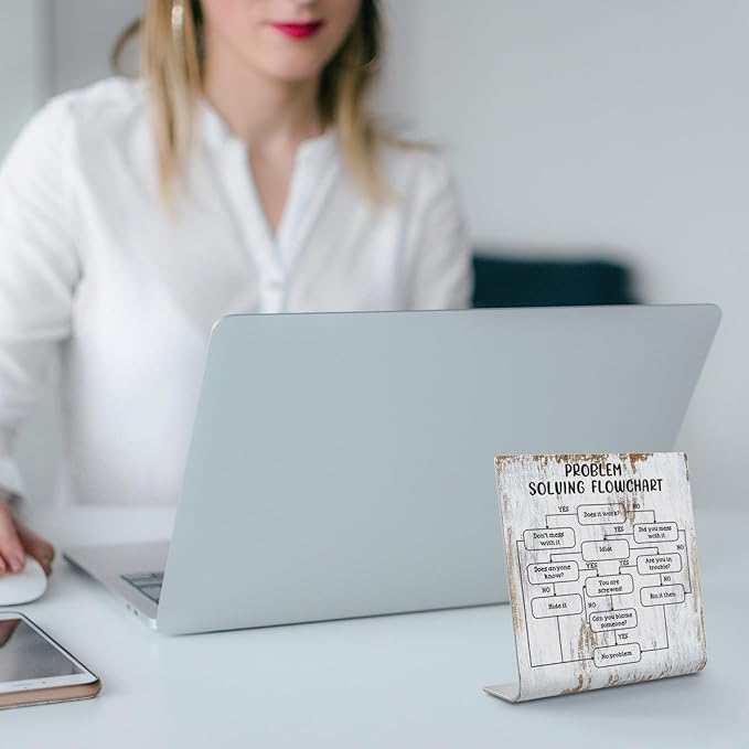 Problem Solving Flowchart Definition Plaque Desk Decor Office Shelf, Funny Work Colleague Gifts for Men Women Engineer, Accountant, Christmas Birthday Humorous Gift Idea for Boss XUV111