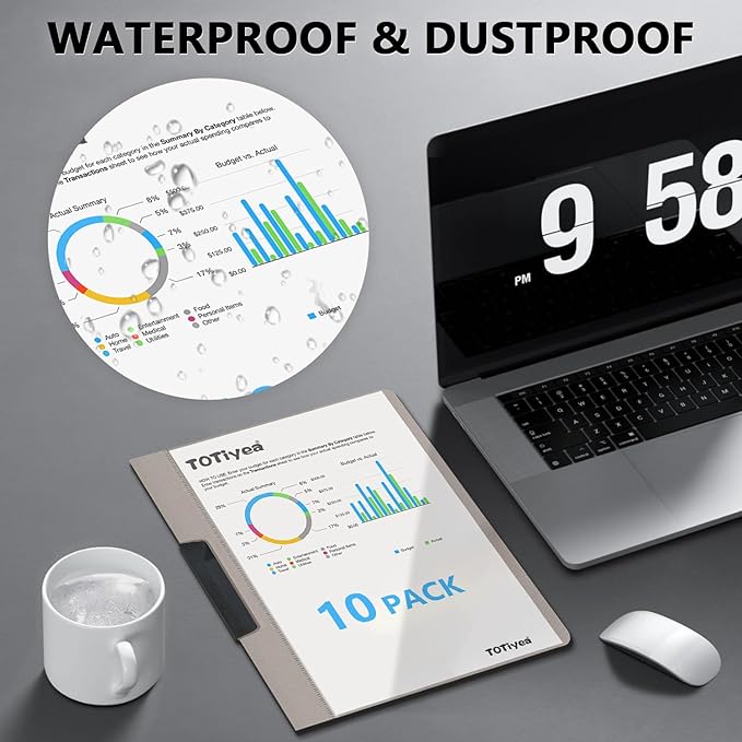 - Premium Clear & dent resistant folders: This file folder made with high-quality plastic. Crafted with 200-micron (8mil) optical-grade polypropylene front cover delivering crystal clarity – instantly reveal document titles for quick access. The 400-micron (16mil) reinforced back features a non-slip suede-textured finish that resists scratches, tears, and bending while providing protection.