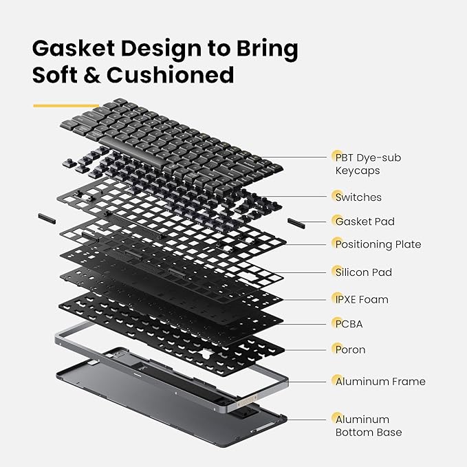 - Gasket Design to Bring Soft & Cushioned: Revolutionize your typing experience with the world's first gasket-mount low-profile keyboard. Enhanced cushioning and even pressure distribution that the gasket mount brings, help you enjoy a truly sleek, precise, and incredibly comfortable typing experience
