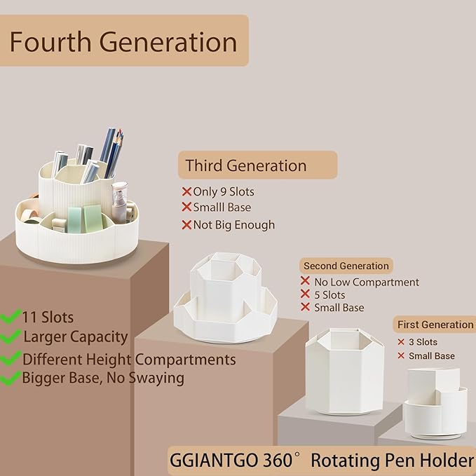 - 【360 Degree Spinning Design】This pen organizer for desk can be turned up to 360-degree rotation. You can rotate it to any angle to easily store or take out the things you want, it keeps your stationery supplies organized and easy to find, making you more productive.