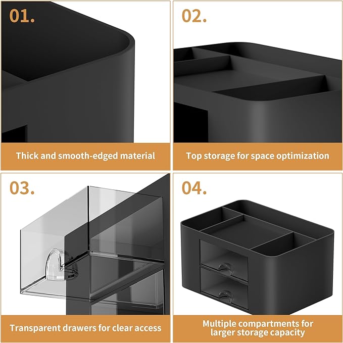 - 【Convenient And Multifuction】This Desk Caddy is no installation required not only perfect for storing your desktop stationery and many other desk widgets but also great for storing your makeup brushes, nail polishes, lipsticks, and other small personal items sorted by type. The transparent drawer makes it way easier to find what you need! and You can put any other daily necessities on the organizer, It helps you keep your stuff organized