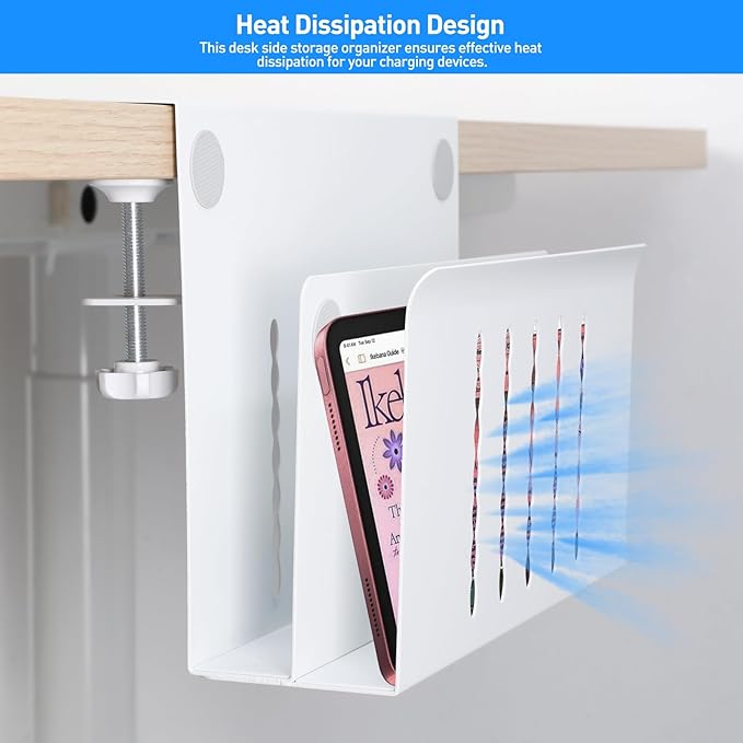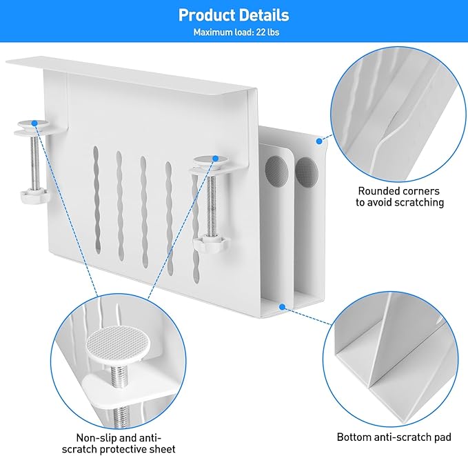 - 【Clamp Under Desk Storage & No Drill Design】Our clamp on side desk storage requires no drilling or tools. The rubber cushion prevents scratches on desks and other objects, and the rounded corners design also helps avoid scratches.