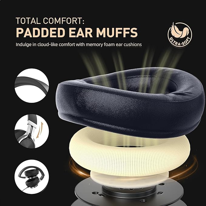 - Unparalleled Comfort for All-Day Use: Featuring 1/3 larger advanced protein leather soft cushions, the headphones offer superior comfort. The adjustable headband ensures a perfect fit for teens and adults, making them ideal for extended use