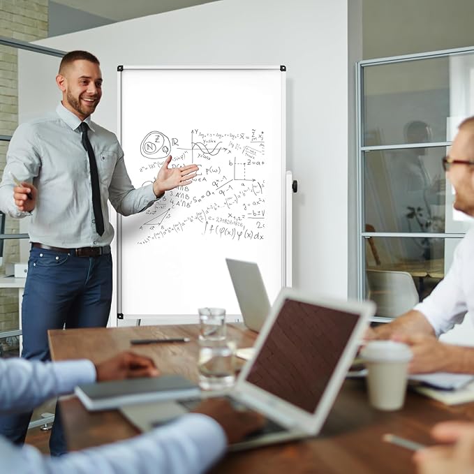 - Dual-sided Writing: Enjoy the convenience of two expansive 40x28 inch surfaces on our mobile whiteboard, seamlessly switchable with a simple stand rotation for enhanced productivity.