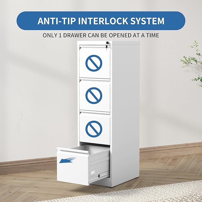4 Drawer File Cabinet with Lock,Metal Vertical Filing Cabinets for Home Office,Heavy Duty File Storage Cabinet for Letter/Legal/A4/F4 Size File,Assembly Require (White, Vertical 4 Drawer)