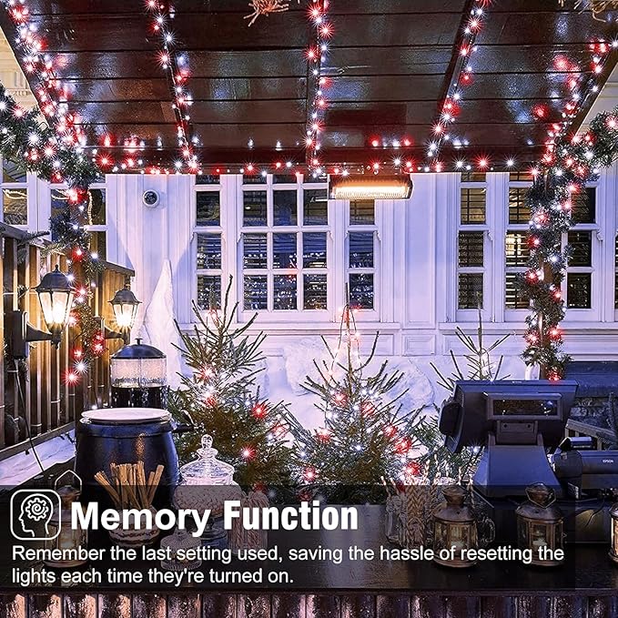 - 8 Lighting Modes: This red white Christmas lights has 8 lighting modes to fit different occasion and mood needs, including combination, in waves, sequential, slo-glo, chasing/flash, slow fade, twinkle/flash, steady on, adjust the lighting modes by pressing the round button on the adapter. The perfect ambient light for family gatherings and holiday celebrations.