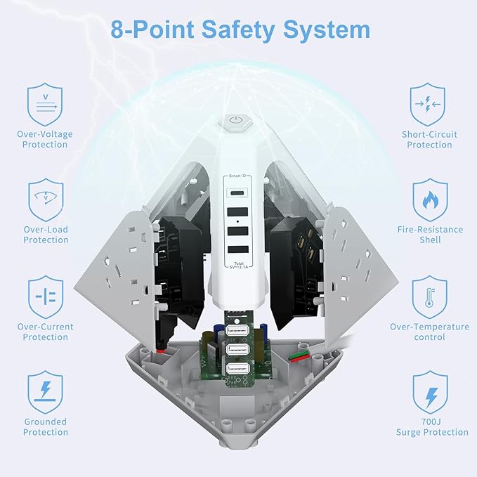 - Surge Protector with USB Ports: NVEESHOX surge protector power strip with USB with multiple protection is made from ABS and PC fire-resistant material and advanced multifunctional protection technology, This power strip has overload protection, short-circuit protection, over current protection, over-voltage protection and overheating protection. we are providing you with a safe and reliable charging environment to ensure the safety of your family members and equipment.