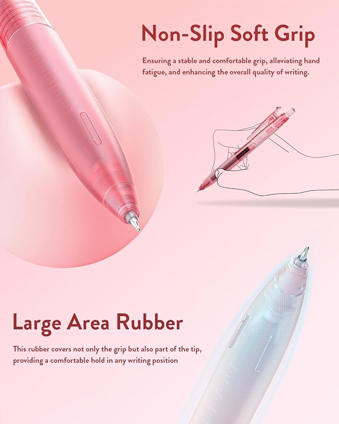 - Comfortable Grip Design: The aesthetic pens body are paired with a wide and thick rubber grip, providing lasting comfort and alleviating hand fatigue during prolonged writing sessions, allowing for a more effortless and enjoyable creative experience.