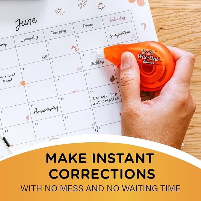 - BIC WHITE OUT - Instantly write or type your corrections with this clean straight line white correction tape, which requires no dry time and wonβt bleed or drip.