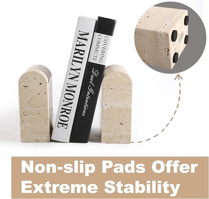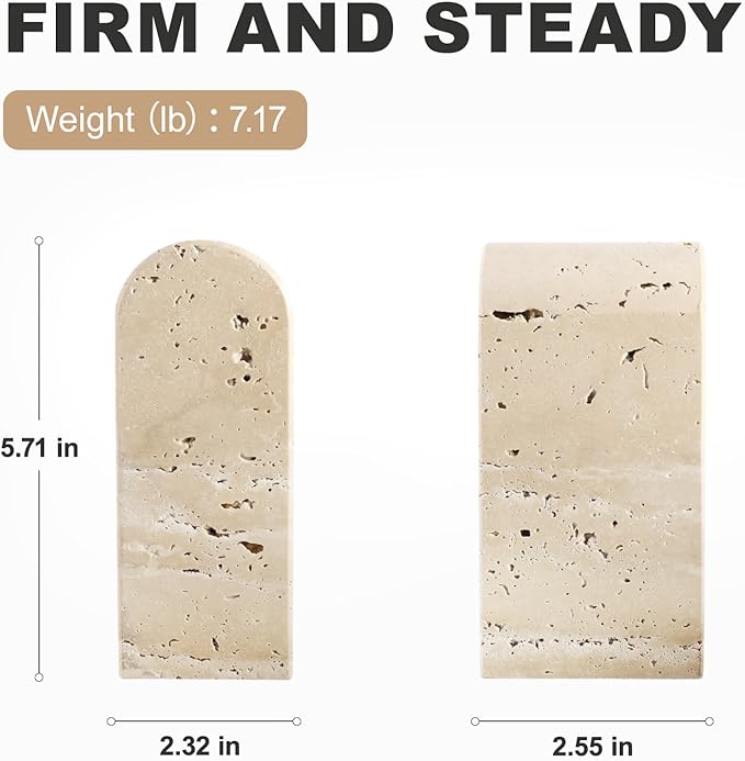 Koville Italian Travertine Bookends for Shelves, Decorative Book Ends, 7lbs Heavy-Duty Marble Book Holders, Bookshelf Apartment Decor for Normal Books/CD/Video Games(Travertino Romano)