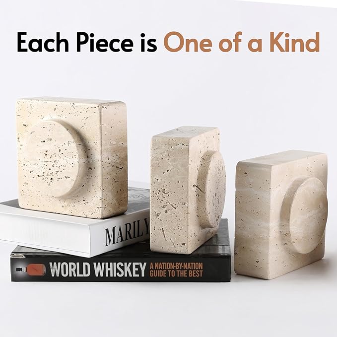 - One-of-a-Kind Beauty: Due to the stoneβs natural properties, each piece will have some degree of variation in patterns. Koville Bookends are made out of solid marble and sized just right for holding up your favorite book collections. A perfect accent piece that elevates your study and adds sophistication to your favorite reading room or living area