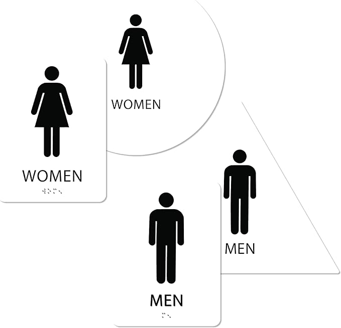 - QUALITY MEN'S & WOMEN'S RESTROOM SIGN BUNDLE - Our ADA Braille bathroom signs are manufactured from 1/16", single-ply acrylic that complies with Americans with Disabilities Act (ADA) Federal regulations. No cheap molded signs here.